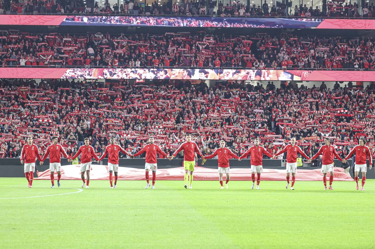 A tradicional vénia aos Benfiquistas, antes do apito inicial deste Benfica-FC Porto, da 11.ª jornada da Liga Betclic