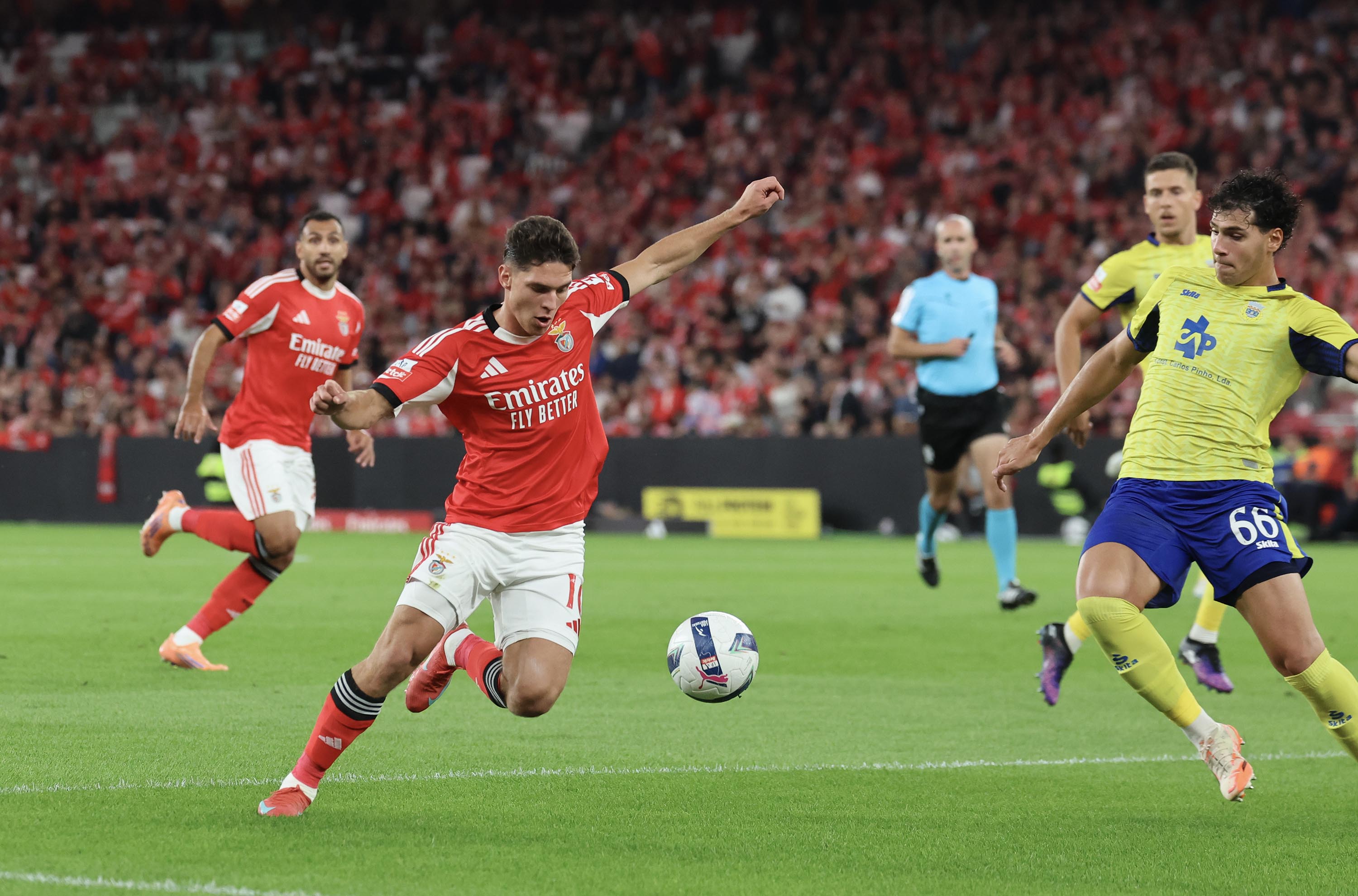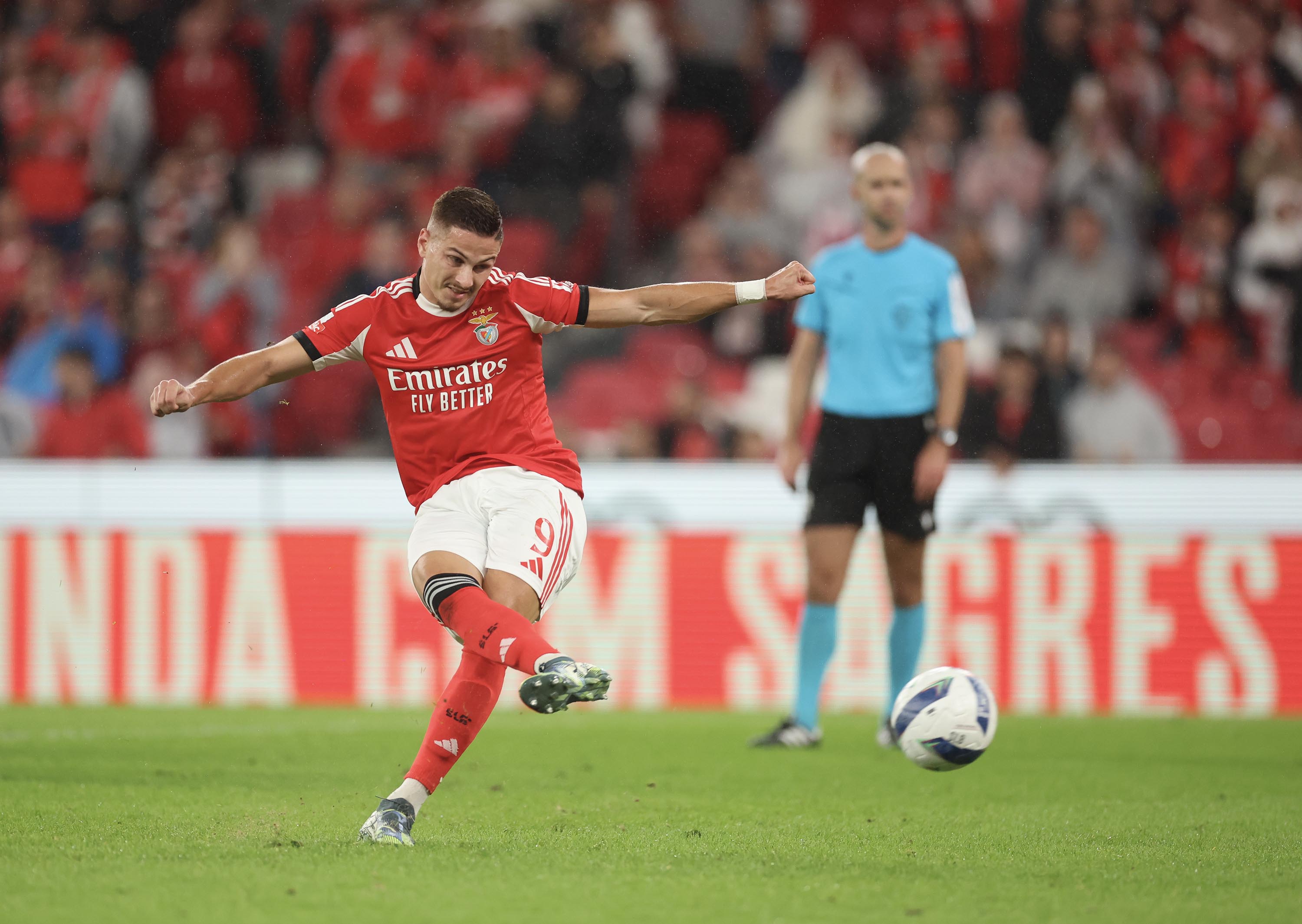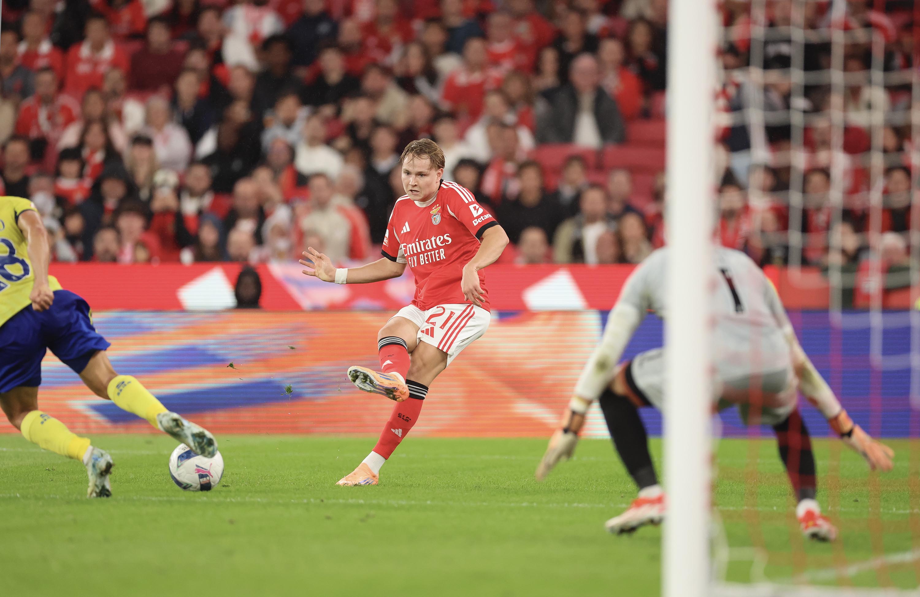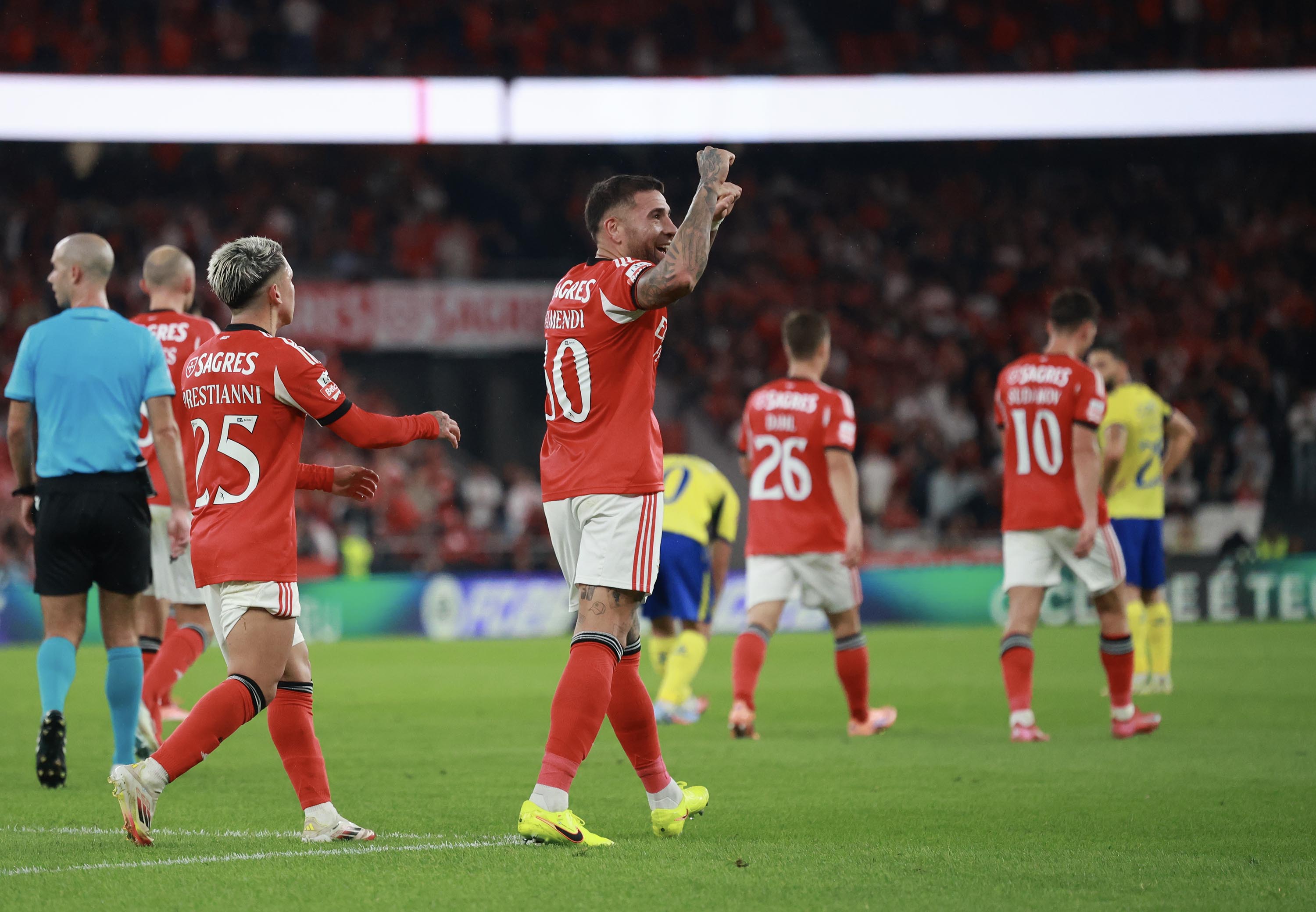 No dia em que o Estádio da Luz completou 22 anos, neste sábado, 25 de outubro, o Benfica recebeu o Arouca, em jogo da 9.ª jornada da Liga Betclic. Com 60 322 adeptos nas bancadas, as águias golearam por 5-0, com golos de Pavlidis – autor de um hat-trick e eleito o Man of the Match –, Otamendi e Ivanovic. Veja as melhores imagens...