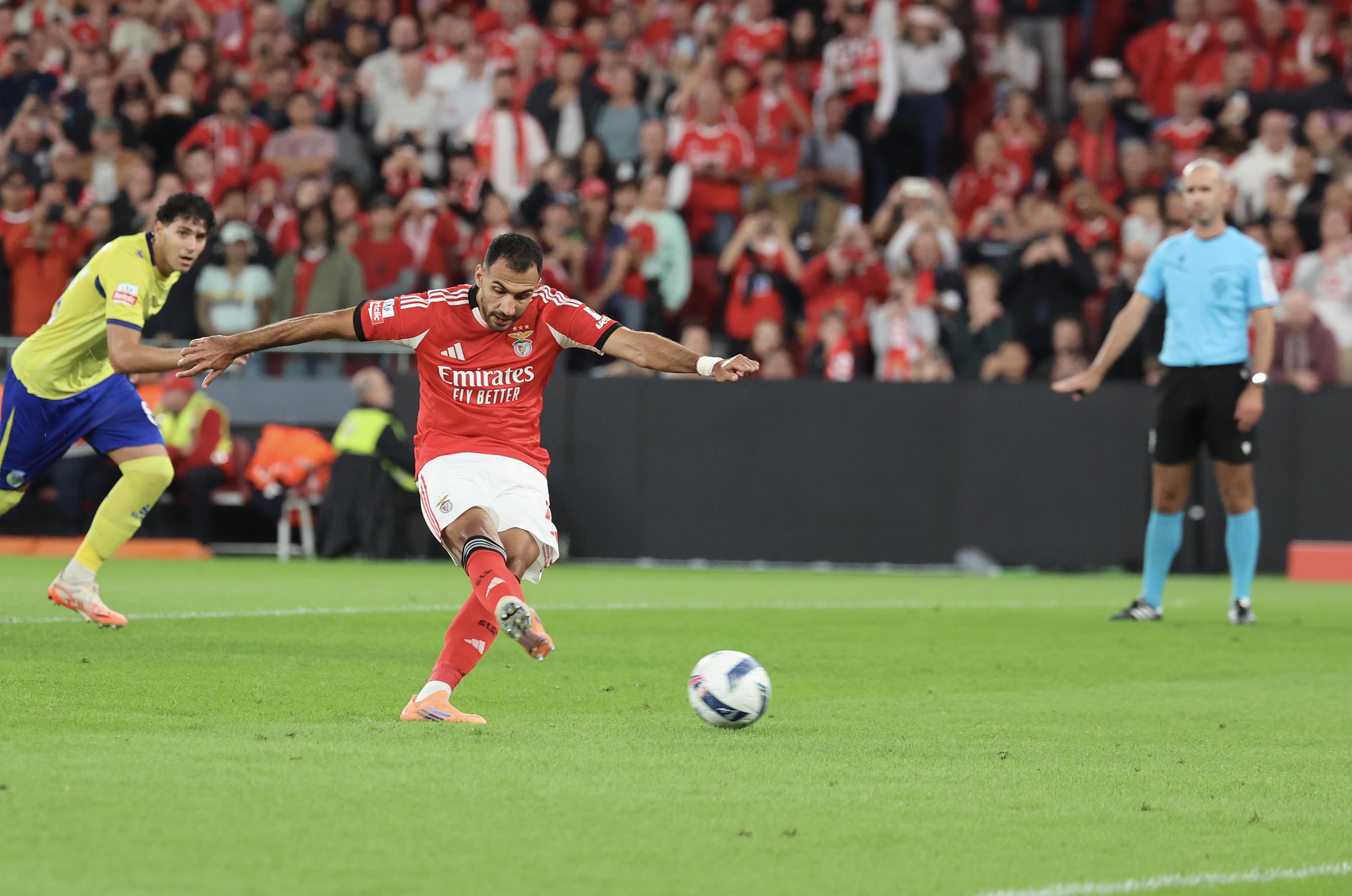 Minuto 22... Pavlidis, da marca dos 11 metros, a rematar para o 2-0