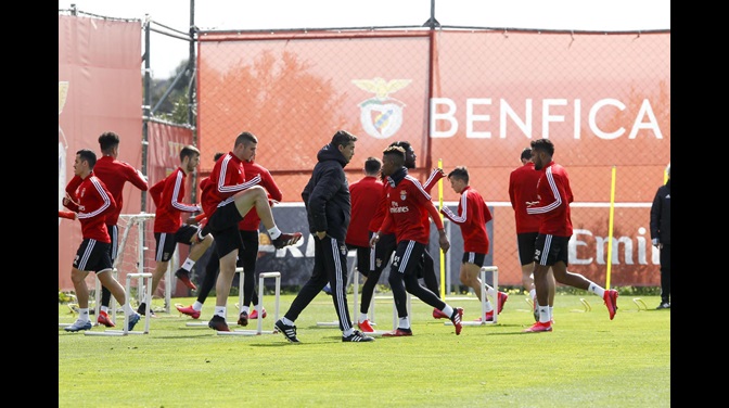 O plantel do Benfica treinou no Seixal na véspera da 2.ª mão dos 16 avos de final da Liga Europa.