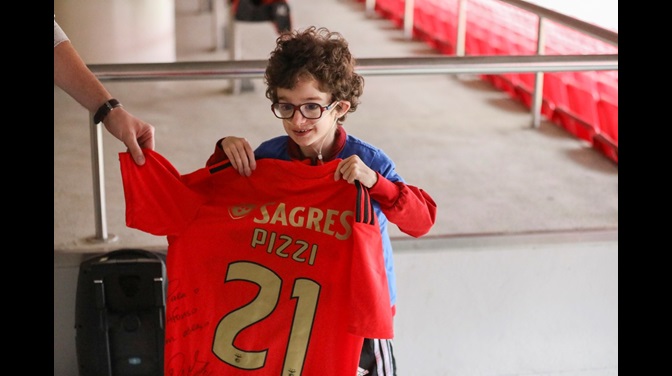 Na véspera do Benfica-Sporting, o Afonso voltou a Lisboa para mais uma sessão de tratamento. E foi aí que realizou o sonho. O Afonso encontrou-se com Pizzi ao final de manhã, no Benfica Campus, e recebeu uma camisola das mãos de quem mais admira.