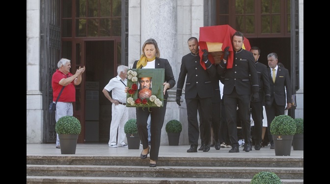 15h02 | Caixão com o corpo de Fernando Chalana, envolto na bandeira do SL Benfica, abandona a Basílica da Estrela.