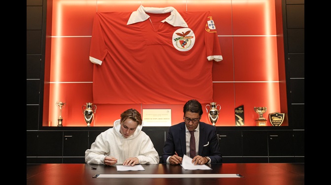 Andreas Schjelderup assinou com o Sport Lisboa e Benfica até 2028