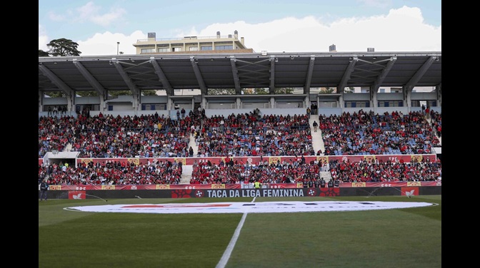 Claramente com número superior de apoiantes, a mancha vermelha evidenciou-se ainda mais, quando as jogadoras subiram o túnel de acesso ao relvado antes do apito inicial. A vénia tradicional foi correspondida com gritos de incentivo para o dérbi. "Benfica, Benfica" foi o mote mal arrancou o encontro!
