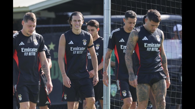 O médio, devido a uma entorse acromioclavicular no ombro direito, esteve impossibilitado de se treinar sem limitações após o desafio com o Boca Juniors, mas, nesta segunda-feira, surgiu junto dos companheiros que estiveram às ordens de Bruno Lage, sujeitando-se à natural avaliação do estado físico para a competição.