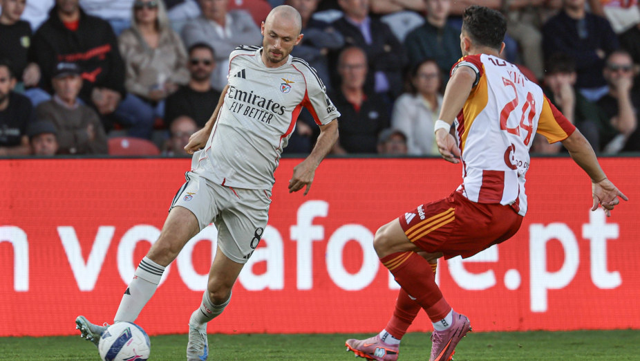Falta sobre Sudakov à entrada da área. Livre direto para o Benfica em posição perigosa.