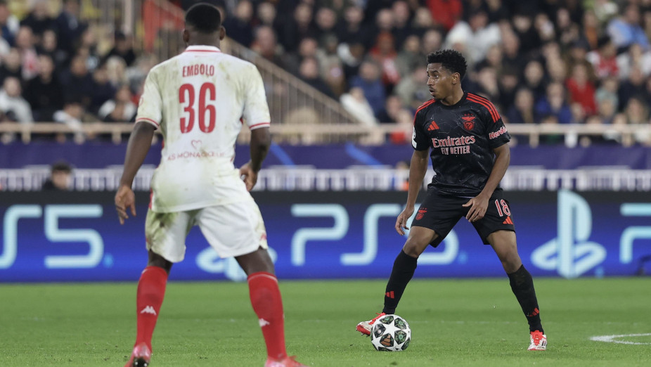 Schjelderup não chega à bola e atinge Singo. Livre para o Mónaco.