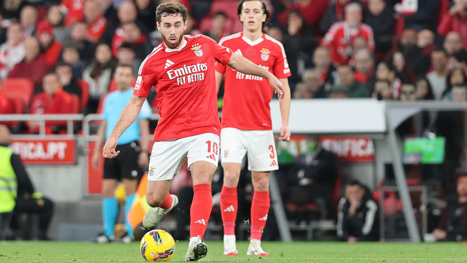 Kökcü recebe a bola à entrada da área, puxa a culatra atrás e dispara forte para nova intervenção vistosa de Lucas França. Canto para o Benfica.