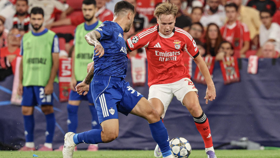 Na 1.ª jornada da fase de liga da Liga dos Campeões 2025/26, o Benfica recebeu o Qarabag, esteve a vencer por 2-0 (golos de Barrenechea e Pavlidis), mas permitiu a reviravolta da equipa azerbaijana (2-3).