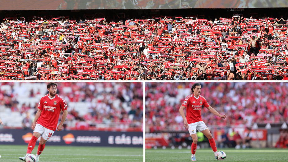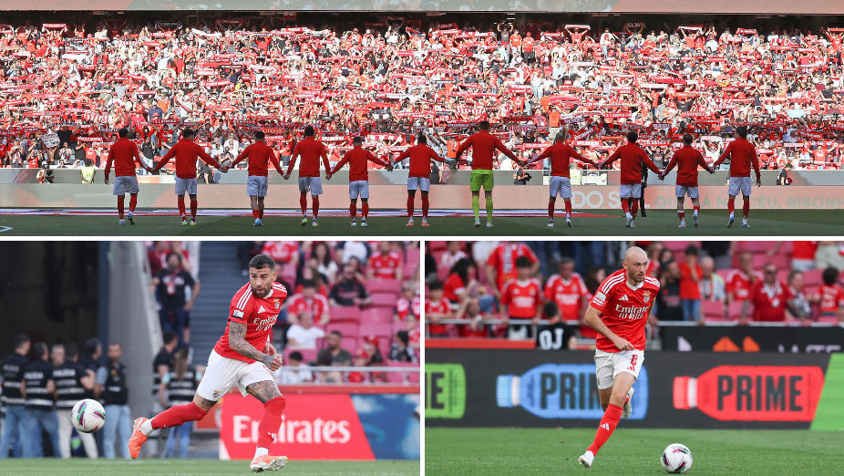 17h23 | Os jogadores do Benfica sobem ao tapete verde da Luz para realizarem os exercícios de aquecimento. Bancadas ao rubro!
