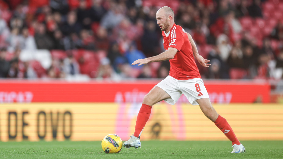 Álvaro Carreras recupera a bola e o Benfica sai para o ataque.
