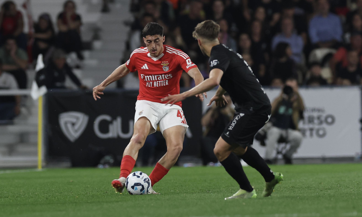 0-3. Schjelderup recolhe a bola, no corredor esquerdo, e descobre Prestianni na área. Sem oposição, o atacante encarnado desfere um remate colocado com o pé direito e amplia o resultado.
