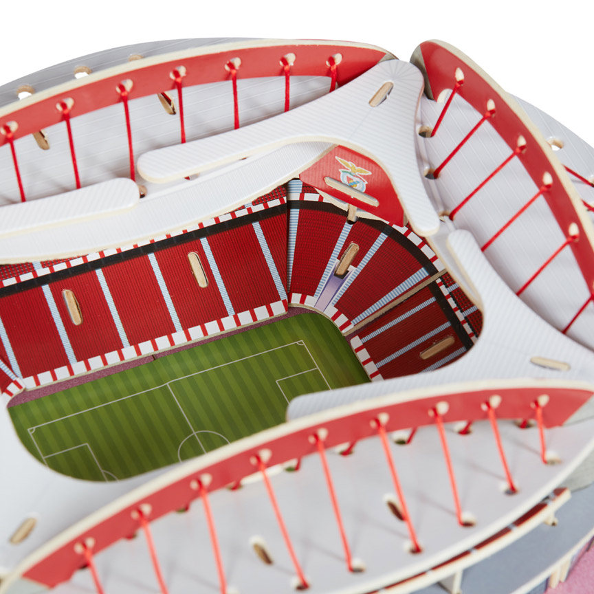Puzzle 3D em madeira do Estádio da Luz, classificado como produto de coleção.