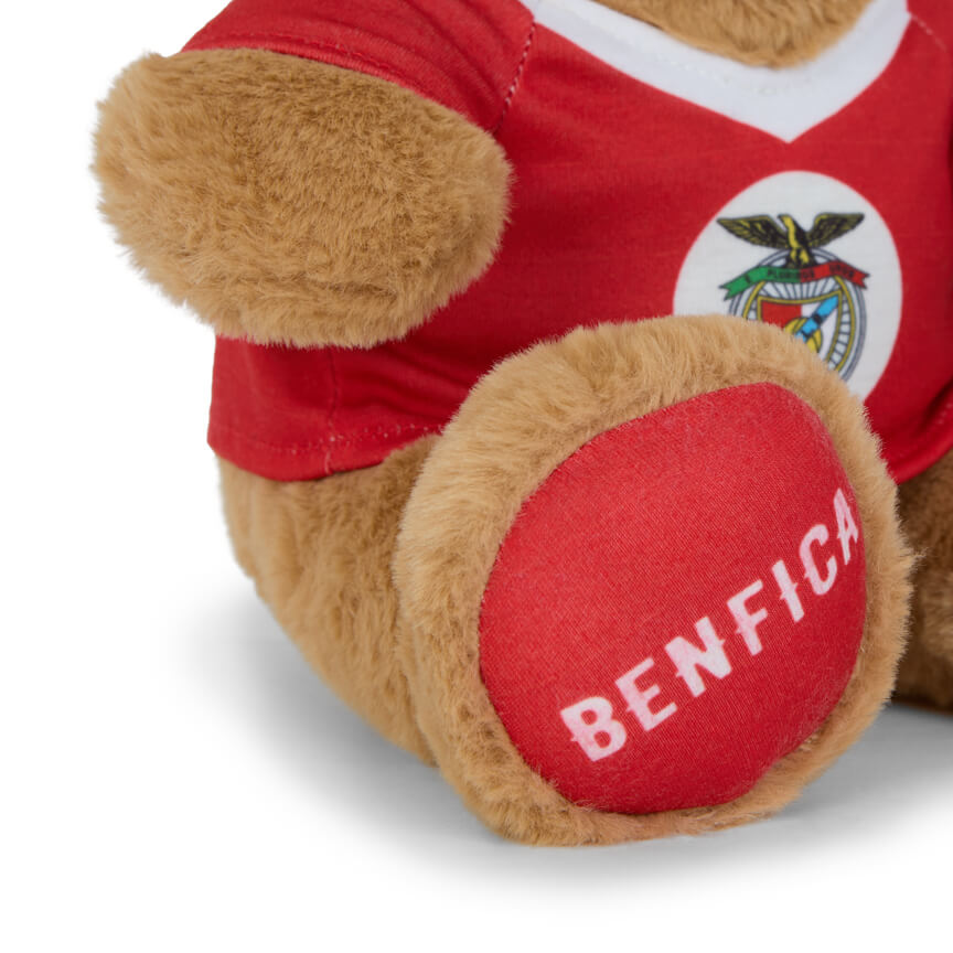 Urso de peluche castanho, com camisola vermelha e emblema vintage do Sport Lisboa e Benfica.Benfica e o ano de fundação, 1904, inscritos nas patas.Tamanho: 18 cm.Imagens meramen...