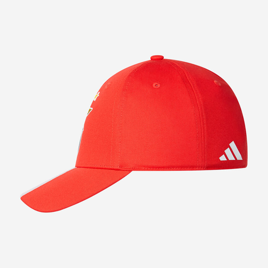 Boné vermelho Adidas, alusivo ao equipamento principal utilizado pela equipa do Sport Lisboa e Benfica, durante a época 2025-2026. Um boné de corte clássico, com o emblema do clube aplicad...