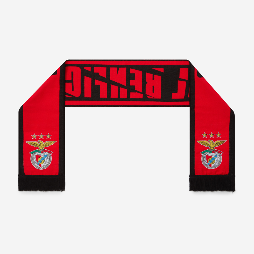 Cachecol vermelho, com a inscrição " SL Benfica".