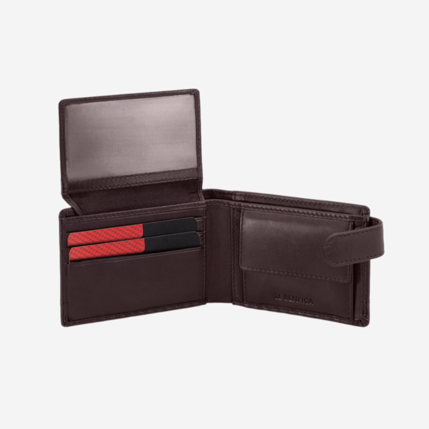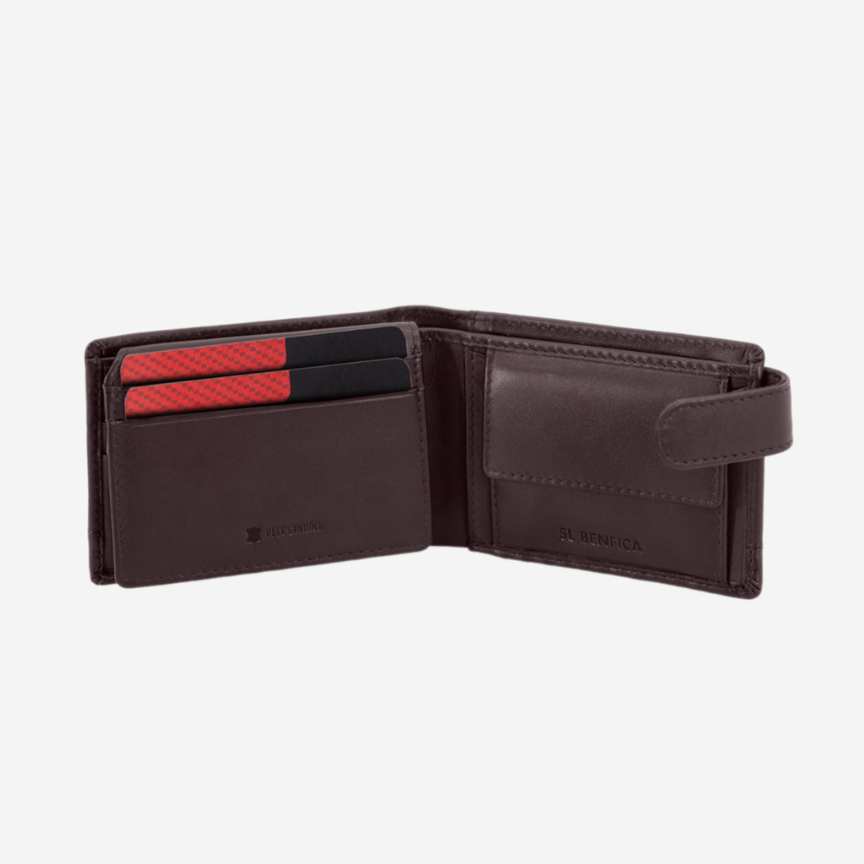 Carteira Pequena Castanha em Pele com Presilha SL Benfica