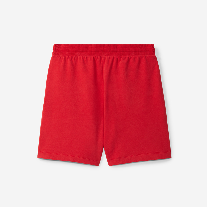 Calções vermelhos do Sport Lisboa e Benfica, para criança, com a inscrição "SLB", em branco, sobre a perna direita.