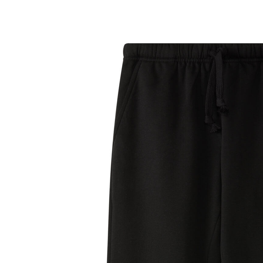 Calças pretas cardadas com Sport Lisboa e Benfica 1904 e o emblema do clube estampados na perna esquerda. Rib nas pernas e dois bolsos laterais.