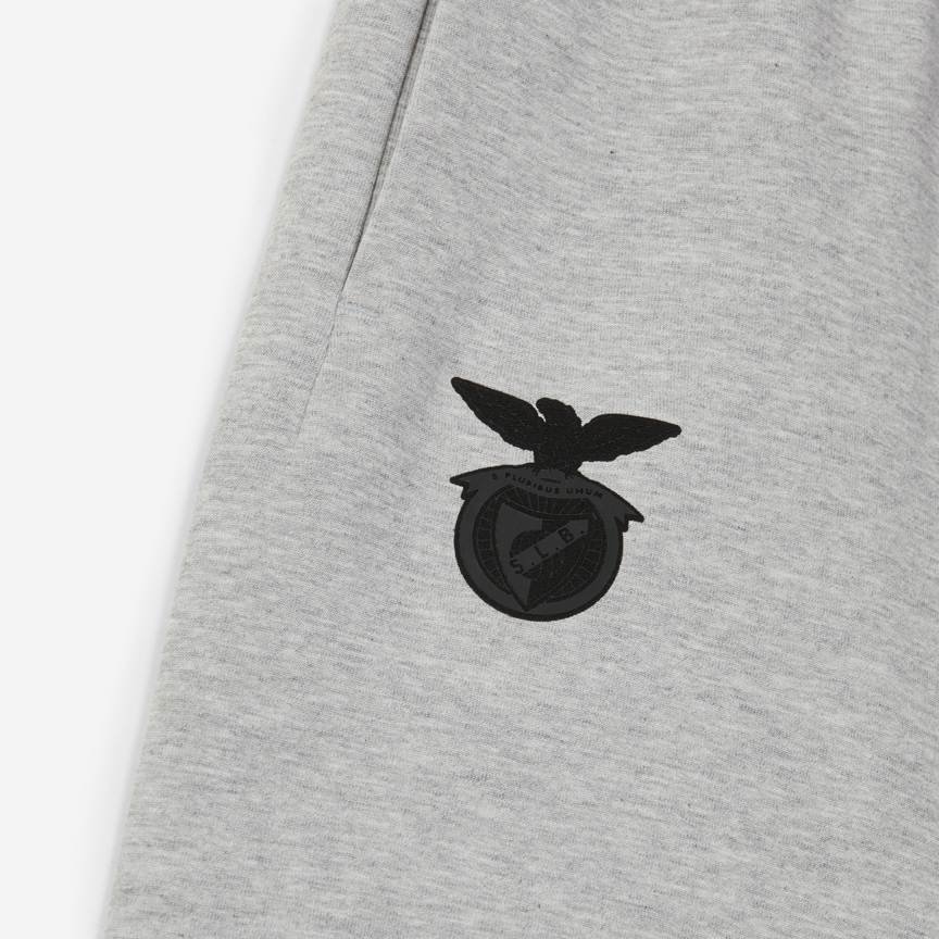 Calções cinza Adidas, com o emblema do Sport Lisboa e Benfica.