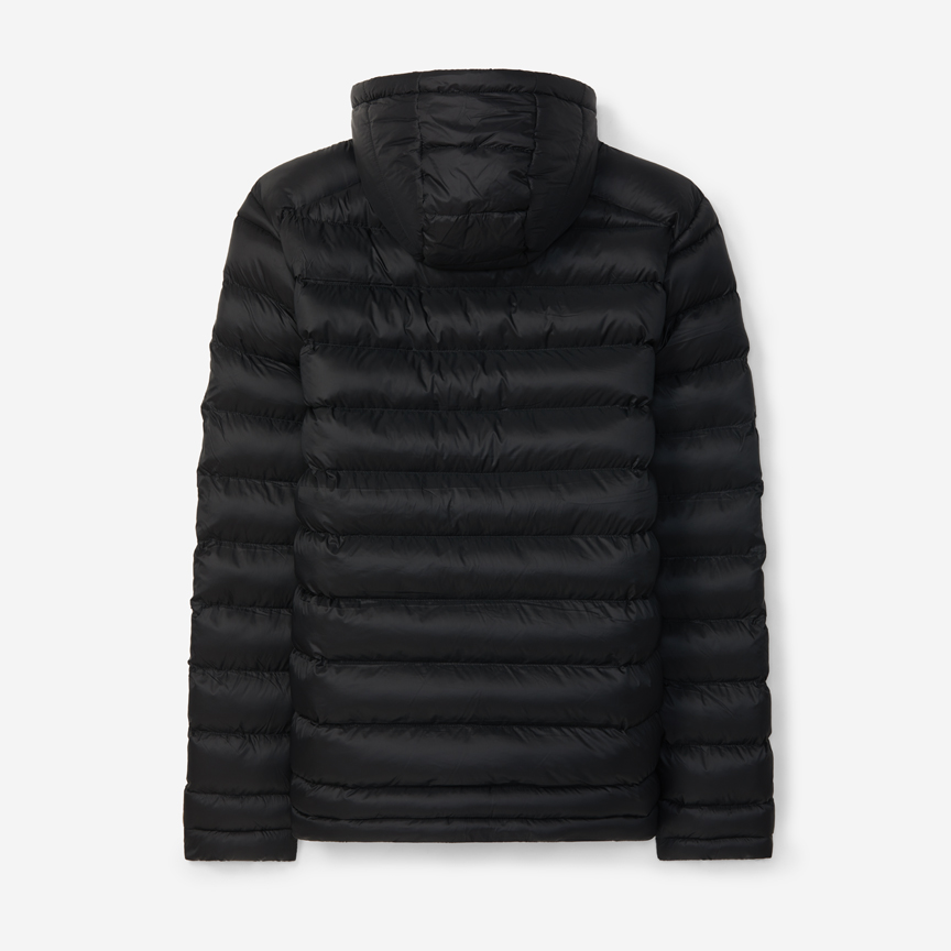 Casaco acolchoado preto, com capuz, do SL Benfica.Ideal para utilizares em dias de chuva, o casaco é finalizado com um repelente de água.Os fechos tem apliques vermelhos com a inscriç...
