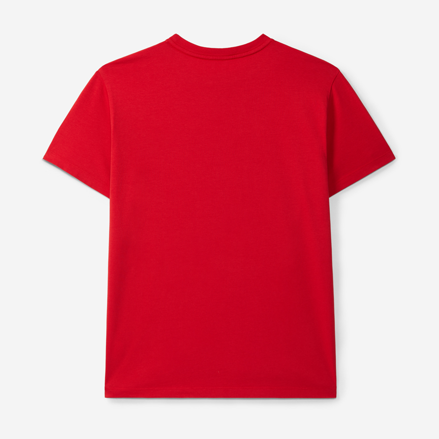 T-shirt vermelha do Sport Lisboa e Benfica, com a inscrição "SLB", em branco, sobre o lado esquerdo do peito.