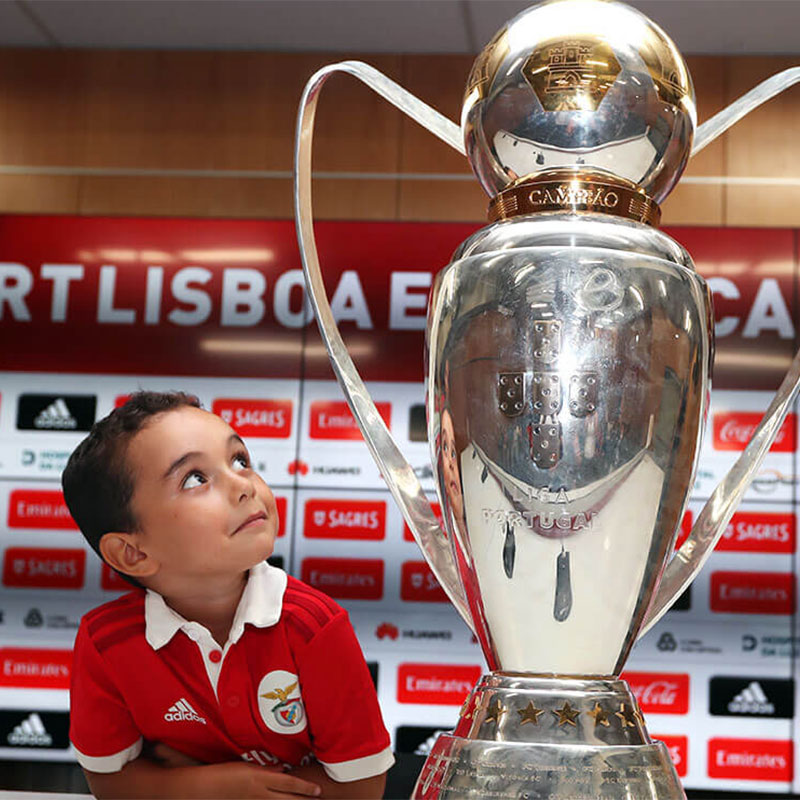 Poderá também adicionar serviços Benfica como merchandising oficial personalizado, a presença da